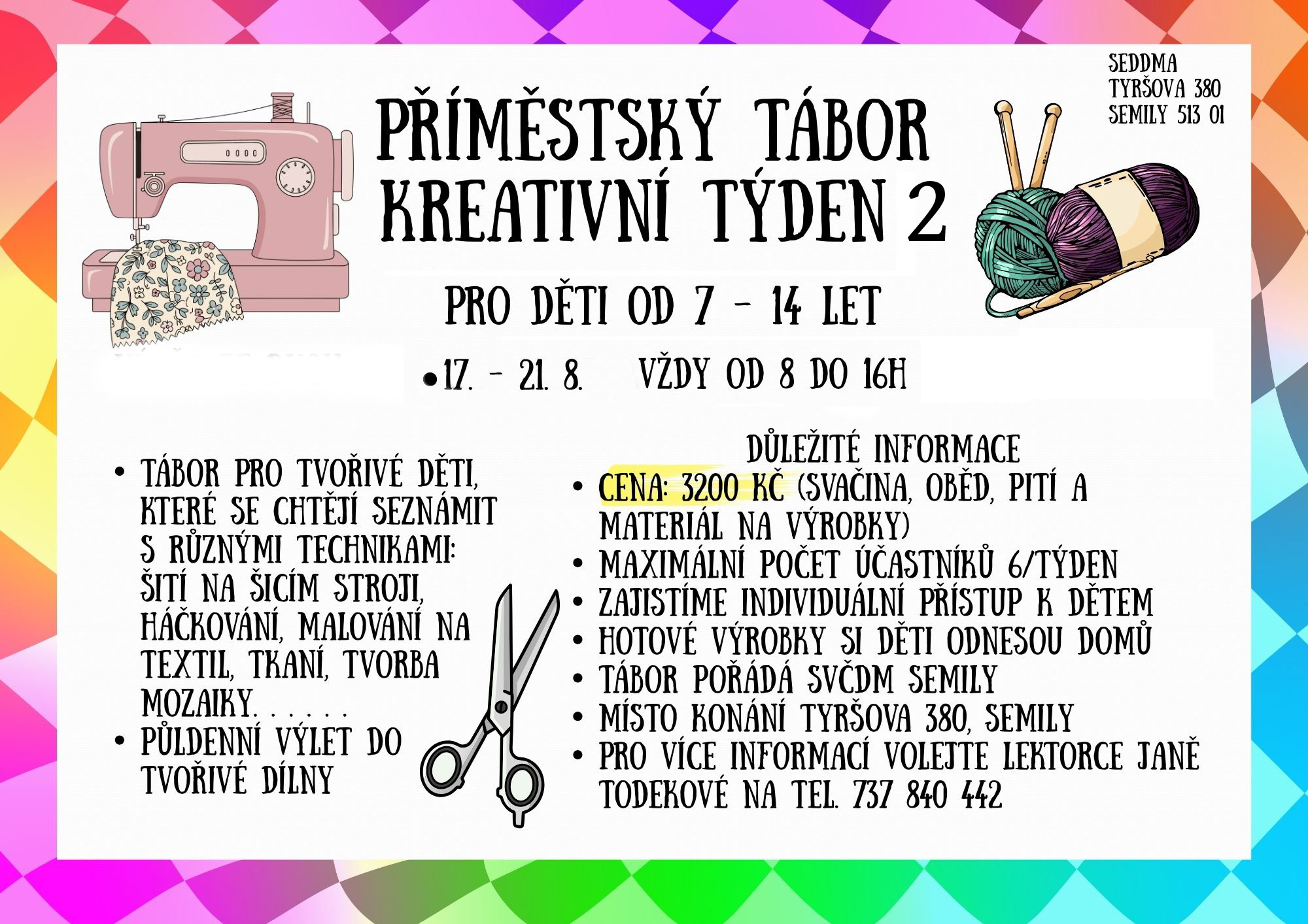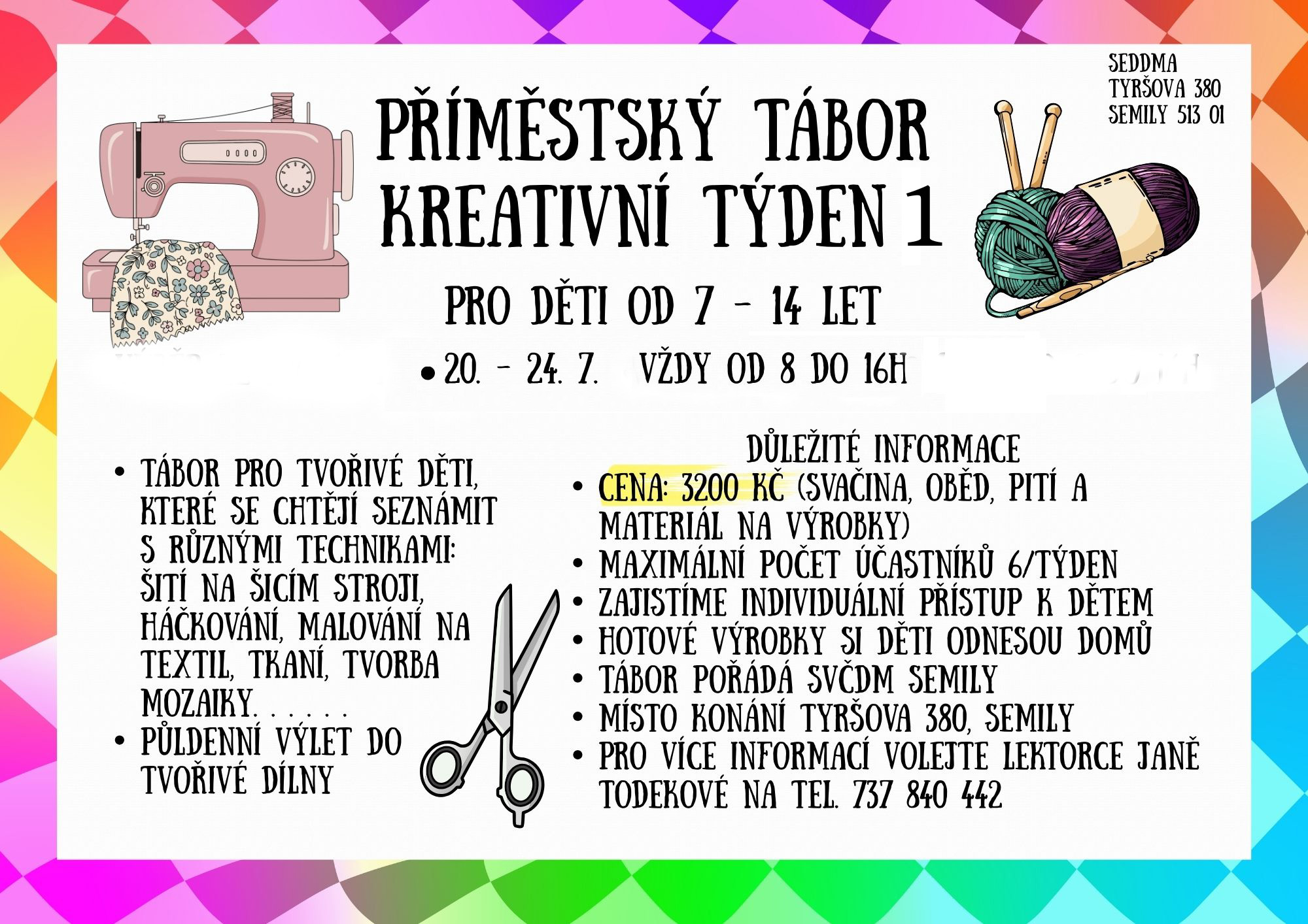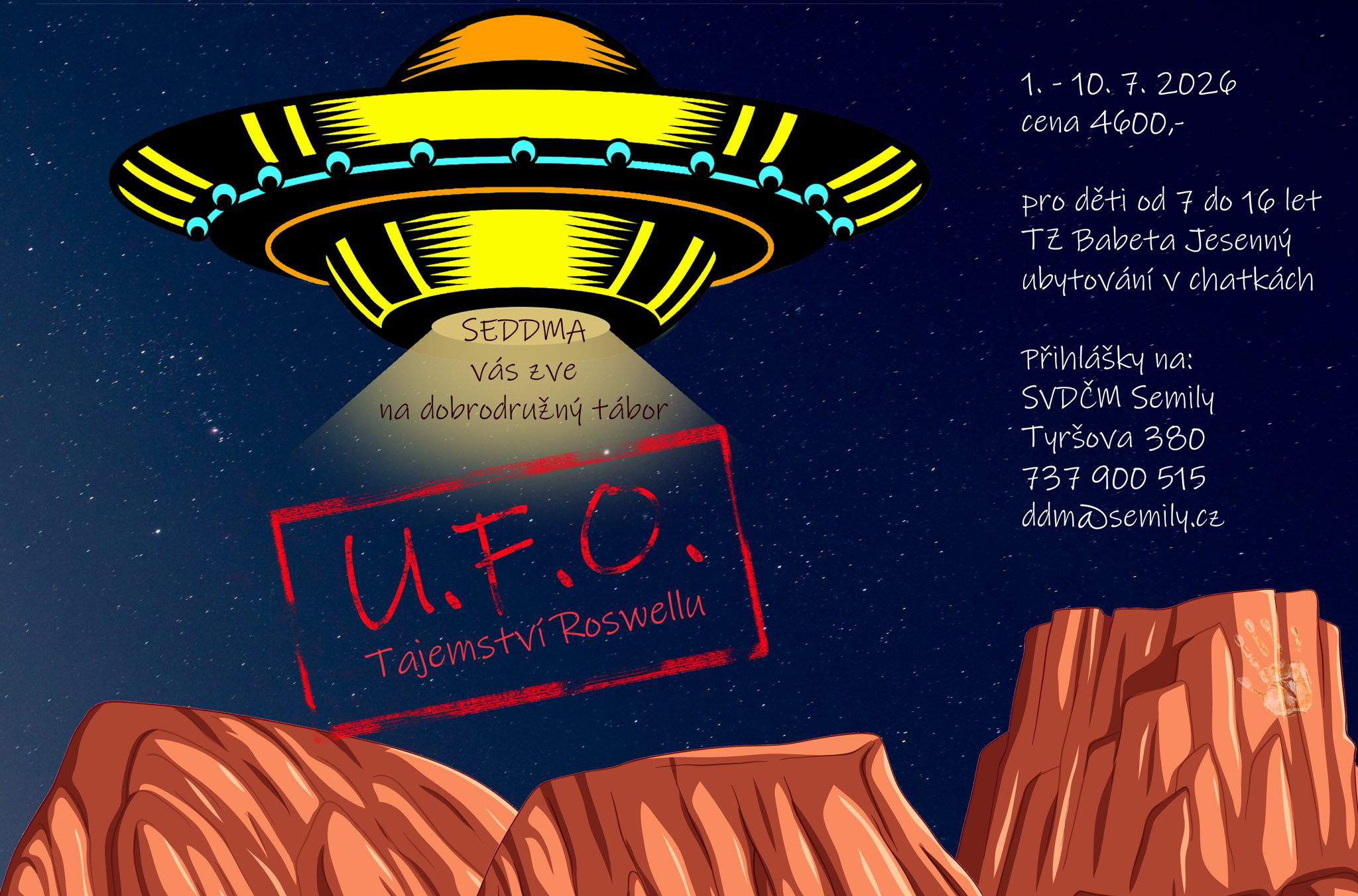 Přihlášky odevzdávejte v SEDDMĚ, vedoucímu tábora nebo je zašlete oskenované na mail SEDDMY, pokud je to možné.Některé tábory jsou určeny primárně členům zájmových útvarů, kteří tak mají přednost před ostatními dětmi a tyto tábory jsou většinou od začátku již obsazeny, za což se omlouváme :)